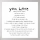 Du har öppnat dörren (igen) och låtit sol skina i påmint ett hjärta om dess plikt och en del av dess uppgift - till kärlek, för att veta, för att vara oändligt och obestridligt övertygad om kärlek, sanning, i hopp, i styrka i alla ge att ha en sträng, en slips för att binda ett hopp i prövande tider en ständig påminnelse om kärlek inte borttappad och Det är värt, trots att det kostar dig, du vet att det har visat det här hjärtat väg som du ska gå på och det här hjärtat är ditt.