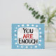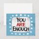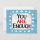 "Du är tillräckligt" är ett sött inspirerande eller motiverande citat med en vit accentform omgiven av vita texturerade vismpunkter.