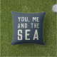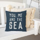 Lägg till coola nautiska stil i ditt strand- eller bassäng-område med vår utomhusblå dekorativ kudde i rik marinblå, med citatet "du, jag och havet" i benvit skrift.