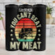 Den här bilden har en humoristisk design med en silhuett av en rökare mot ett reflekterat solnedgång. Texten "DU KAN INTE BETA MY KÖTT" är i ett fet, nedtryckt teckensnitt som skapar en tydig och enkel grafisk perfekt för en barbeque entusiast eller grill master.