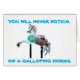 DU KOMMER ALDRIG ATT MEDDELA KORTET CAROUSEL GREETING CARD är ett objekt i KAMMAREN FÖR SUNSHINA-erbjudanden för reproduktioner av bra på produkter som är designade för hemmet eller kontoret. GREETING CARD är en återgivning av GALLOPING HORSE-frasen som återges på ett fotografi som tagits av Gerry K. Furgason och ingår i hennes SOUTHERN DRAWLS-serie av ord att leva med och fraser att komma ihåg.