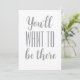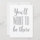 "Du vill vara där." Den här frasen är enkel, säker och förutseende och fångar med elegans kärnan i ditt kommande firande. Den är utskriven i samma snygga skript och lång sans serif-typografi som inbjudan och skapar en sömlös, modern designsvit. Den lyxiga gråttet på skarpa vita ger ett förfinat utseende, medan baksidan ger en minimalistisk layout för namn, datum och webbplats för bröllop - vilket gör att du enkelt kan anpassa dig samtidigt som du behåller kortets rena, tidslösa estetik.