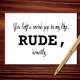 Att sakna någon är svårt. Speciellt när deras frånvaro är direkt oartigt. Detta minimalistiska kort säger vad du verkligen tänker - med en djärv ”OARTIGT” för effekt och en viskning av ”ärligt talat” för den känslomässiga sanningen. Ett modernt sätt att säga ”jag saknar dig” med en blinkning.
