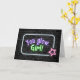 Lila och grönt nyon med rosa stjärna på en mörk tegelvägg för en födelsedag.