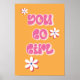 En motiverad poster gjord med ljusa färger för att tillföra varm och solsken till ditt rum, för att uppmuntra dig att gå i behållan, blomma och blunda, gå tjej.