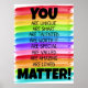 DU MATTER! En underbar poster att sitta i en skolrådgivare, barnterapeut eller barnpsykolog för att påminna barnen om att de spelar roll! En väldigt söt poster att dekorera klassrummet eller kontoret med! Har en ljus, roligt och glad regnbåge i färg. Objektet har vattenfärgsbakgrund.