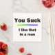 Fira den riktiga du med den här roliga "Du Suck". Jag gillar det i en människas design och firar homosexuellas frihet och pride.