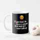 Kaffe mugg med ett citat: "Om du tänka är tystnaden besvärlig, vänta bara tills jag börjar prata." Och budskapet, kan vi vänta tills jag har druckit kaffe? Lite sarcasim för att låta folk få veta att vara tillbaka några minuter tills du kan njuta av morgonkaffet innan du hoppar in på en upptagen dag. Gör en underbar gåva till kaffet älskare du känner.
