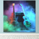 Two vibrant electric guitars - one in earthy tones, another in emerald blue - rest elegantly alongside an amplifier, creating an immersive musical atmosphere. The contrast between the instruments and the dark surroundings evokes passion and creativity, perfect for music lovers seeking visual inspiration.