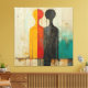 This striking abstract artwork explores the timeless theme of duality through two simplified human forms standing side by side. Divided by color and tone, one figure emerges in warm hues of yellow and red, while the other is rendered in deep blacks and muted shadows. Together, they create a powerful visual metaphor for contrast—light and dark, emotion and reason, presence and absence.