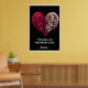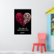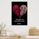 Denna slående poster en komplicerad hjärtkonstruktion mot en djup svart bakgrund, som symboliserar den harmoniska föreningen av två distinkta men kompletterande själar. Den lämnat halvan av hjärtrytmen i riken kramade, medan högernas halva skiner i ljusgräddvit, vilket skapar en kraftig visuell kontrast. Båda sidor adorberas med en utdragen snurrande mönster som påminner om baroque- eller stamkonst, där detaljerat etsat linjer flyter sömlöst mellan de två halvorna. Det ornerade rullverket skapar en känsla av rörelse och sammanflätning, vilket antyder det komplexa bandet mellan två individer. I bildens grund står det i eleganten "Två själar, en hjärtetsad i kärlek för alltid", som förstärker temat för den eviga unionen. Den sofistikerade designen kombinerar inslag i traditionell romantisk bild med ett modernt, nästan mystiskt konstnärligt stil som höjer den bortom konventionell valentinbildsfilm.