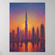 Dubai Burj Khalifa Pointillism Skyline Sunset Poster