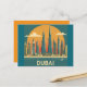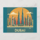 Dubai design i Vintage Travel-stil med en kustscen med stranden och siluetten av Dubai.