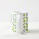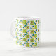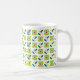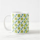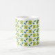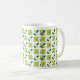 Geometriskt blommamönster på en vitbakgrund. Du kan välja från flera muggstilar och färger.