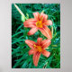 Accentuerar dekorationen i ditt hem med denna vackra dubbla lilja blomma poster. De orange blommorna sticker ut mot de frodiga gröna bladen i bakgrunden vilket får denna poster att sticka ut. En blomsterposter skulle vara en genomtänkt husvärmings eller annan tillställning present för henne.