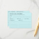 Dubbelsidig grönblå bröllopsfestrecept tilläggskort