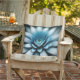 Min yttre oasis", Dubbla blå blomma på svart bakgrund och utomhuskudde. Den blå blomman är en lugnande, fredlig och lugn blomma och ger en känsla av avslappning och komfort till din bakgård.