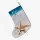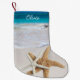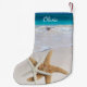 Tropiskt temat julstrumpning, tryckt på båda sidor med en strandscen och stor stjärnfisk. Välj att hänga mot höger eller lämnat och använda namn-mallen på motsvarande sätt. Ta bort provet från namn som inte behövs, eller ställ samma namn på båda sidor. Turquishavet vatten och stranden täcker båda sidor.