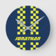 Dubblan checkade in rand klocka med färg som är fullt anpassade. Klicka på Anpassa om du vill ändra bakgrunden till färg. Om du vill ändra det markerade rand färg klickar du på anpassa, markerar Kontrollerat2.2 lagrar och ändrar färg för fyllningen. Det är perfektens klocka för bilentusiaster och ditt garage. Anpassa den genom att ersätta platshållartexten. Om du vill ha fler alternativ som att ändra teckensnittet och det är storlekt/färg eller mellanrummet mellan brev klickar du på knappen "Anpassa". *Observera att Zazzle Watermark som visas i zoomförhandsvisningen INTE visas på den färdiga tryckta produkten. © Rosewood and Citrus