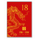 En unik uppsättning bordsnummer som är skräddarsydda för draken och det foenix-temade bröllop. De har en stiliserad guld-drake mot en röd bakgrund. En symbol för dubblans lycka sitter över namn i lycklig-paret och datum för deras speciella bröllop-händelse.