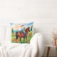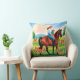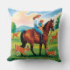 Detta designkoncept visar på ena sidan av ett dubbla-sidigt dekorativ kudde, som har ett mor på horseback med sitt barn tittar på en hjort som springer på gräs.