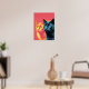 En modern och livfull illustration av två katter som sitter i kontrasterande huvar. Den ena katten, som är full av orange och gult, symboliserar värme och energi, medan den andra, som är skuggad i coola blå, förkroppsligar lugn och inåtvändning. Med en minimalistisk övertoningsbakgrund med ett centralt sol-liknande organ fångas känslor och kattens tidlösa mysterium upp i den här teckningen.