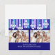 Glad helg christmas anpassningsbar-dubbla-fotovykort i blått, lila, vitt och teal modern julmassa snöflingor ,dekoration och rand mönster, elegant och enkelt. Önska din familj och dina vänner så bra som möjligt med den här julhelgen med roligtens vykort.