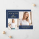 Det här enkla och snyggt studenten-annonskortet innehåller två av dina favoritfoton från 2023 student, tillsammans med klassisk elegant och faux guld-skript på marinblå bakgrund för ett enastående minimalistiskt utseende.