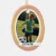 Dubblans fotojulprydnad. Oval, keramisk träd-ornament med mallar på båda sidor för att lägga till ett lodrät 4x6-foto (eller liknande). Spara pengar och köp ett prydnadsföremål för två barn eller använda 2-foton av samma barn.