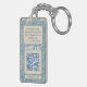 En nyckelkedja som använder ett blått mönster av William Morris, designad för att göra QR-streckkoderna estetiskt tilltalande, utan att förlora funktionaliteten. Nyckelkedjan är dubbelsidig, med olika QR-fält på vardera sidan. Varje sida har sin egen underrubrik för tydlig märkning. Länka till två olika platser, t.ex. en för wifi-åtkomst och en annan för en rabattkod, eller bara använda samma länk i båda QR-streckkodsfält (båda sidor av nyckelkedjan) för att underlätta användan. Det finns också ett ställe som kan lägga till din logotyp på framsidan och en annan som kan användas för affärskontaktinformation på baksidan.