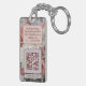 En nyckelkedja med snittblommor för blomster, designad för att QR-streckkoderna ska vara estetiskt tilltalande, utan att förlora funktionaliteten. Nyckelkedjan är dubbelsidig, med olika QR-kod fält på vardera sidan. Varje sida har sin egen underrubrik för tydlig märkning. Länka till två olika adress, t.ex. ett för betalning och ett för befordran, eller bara använda samma länk i båda QR-streckkodsfält (båda sidor av nyckelkedjan) för att underlätta användan. Det finns ett ställe som kan lägga till logotypen på framsidan och ett annat som kan användas för affärskontaktinformation på baksidan.