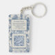 En elegant blå nyckelkedja för tofiler är designad för att QR-koderna ska vara estetiskt tilltalande, så dina reklammaterial kommer att ha extra tilltalande verkan. Nyckelkedjan är dubbla-sidig, med två separata QR-kodsetiketter fält, var och en med sin egen underrubrik för tydlighetens skull. Länka till två olika webbplatser, t.ex. en för betalning och en för social-media, eller ange helt enkelt samma länk på båda sidor av nyckelkedjan för att underlätta användan. Det finns också en plats där du kan ange din logotyp på framsidan och en annan plats där du kan ange affärsinformation på baksidan.