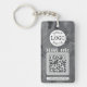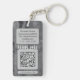 En grått-marble-nyckelkedja av elegant, designad för att QR-streckkoderna ska vara estetiskt tilltalande, utan att förlora funktionaliteten. Nyckelkedjan är dubbelsidig, med olika QR-fält på vardera sidan. Varje sida har sin egen underrubrik för tydlig märkning. Länka till två olika adress, t.ex. ett för betalning och ett för befordran, eller bara använda samma länk i båda QR-streckkodsfält (båda sidor av nyckelkedjan) för att underlätta användan. Det finns ett ställe som kan lägga till logotypen på framsidan och ett annat som kan användas för affärskontaktinformation på baksidan.