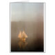En kanot med dubbla segel går iväg, in i tidigt morgondimman.