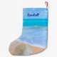 Bygg julklapp med namn och design på båda sidor. Håll den här söten i lager lämnat eller höger. Tropiskt blått hav vatten, strandsand och en realistisk bild av sanddollarn dekorerar båda sidor. Namn är i lila-blått skript och kommer att skrivas ut på båda sidor.