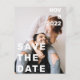 Förenklad och minimalistisk dubbla, stor och djärv fotomodern, spara datuminbjudan kort. Innehåller stor och fetstilt vit text över ditt eget foto med texten "Spara datum" och utrymme så att du kan lägga till ytterligare foto- och extra-detaljer på baksidan. Perfekt för dig att förbereda dina gäster för ditt viktiga evenemang. Du kan lägga till två av dina egna foton, skapar den romantisk och ändra texten till den stora och feta typografin så att den kostymer din egen bröllopsdag.