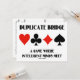Om du varar värd ett överbryggaparty, ska du tycker om att använda dessa anpassadeinbjudningar som presenterar de fyra kortkostymerna tillsammans med ordstävet "dubblett, överbryggar en lek, var intelligent, varar besvärad Meet".
