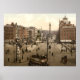 Fotomekanisk utskrift av en gatuvy av staden Dublin i Irland, som fördes mot slutet av 1800-talet. Fotografiet visar Sackville Street och O'Connell Bridge i Dublin, med fotgängare, spårvagnar och hästar och vagnar. Fotografi från kongressens Bibliotek LC-GRÄV-ppmsc-09876.