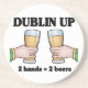 Rolig öl som dricker underlägg med det irländska dricka ordstävet "Dublin upp - 2 öl hands=2!",