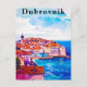 Dubrovnik Retro Watercolor Old Town Travel Vykort