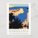 Dubrovnik, landskapsvy på staden, fästningen och bukten. vykort för vintage resor