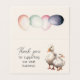 Ducks folded thank-you message business cards. For duck farmers, egg sellers, homesteaders, this card has a thank you message inside for customers. Beige color with custom text on the front. Wording is, "Thank you for supporting our small business", next to two white ducks. Inside, include your farm name with address, website and contact. Also create a personal message of appreciation to customers. The back of the card has colorful eggs image.