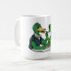 A cartoon-style mug, with a frog and a comic duck doing a tug-of-war while eating spaghetti ! 🍝