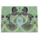 Regal Zebra, som lyfts upp på ben, med ett personligt monogram, lägg till ditt eget eller lämna tomt. Bild på grönt av blek med starst mönster