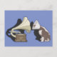En hund med en skrapa på en grammofoninspelare med en skraperhorn. Färg, skuggor för fin, 3-d-effekt, på t-shirts, poster, kort, presenter.