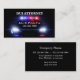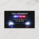 DUI Attorney-affärskort med coola polisbil i bakgrunden med akutet ljus på, ditt namn och grundläggande information på framsidan och all din kontakt- och affärsinformation på baksidan i denna smarta tvåsidiga utformning. Designad som visitkortsmall för en berusad trafikförsvarsadvokat, DUI eller kriminalförsvarsadvokat.