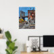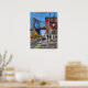 Denna DUMBO Brooklyn New York- akvarellaffisch fångar den världsberömda utsikten över Brooklyn Bridge, inramad av historiska tegelvaruhus på Washington Street. Konsten blandar arkitektonisk precision med mjuk, målerisk textur och visar höstvegetation i varma röda, gula och orangea färger under en klar blå himmel. Bilar och fotgängare ger äkta gatuenergi medan brons stentorn och svepande kablar skapar en dramatisk fokuspunkt. Kollektionen utforskar en unik stilistisk tolkning - från klassisk akvarell till uttrycksfulla blandteknik - som firar Brooklyns kreativa anda och tidlösa urbana charm.