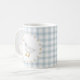 Fira din lilla dumma gås med denna charmiga kaffekopp för baby shower som har ett mjukt blågt checkmönster, en vit krans av tusenskönor och en söt vit gås med en fin blå rosett på framsidan. Designad för att samordna vackert med Silly Goose Is Soon to Be on the Loose-baby shower-temat, ger denna personliga kopp en tidlös, lekfull touch till din dekor för baby boy shower.