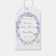 Honk! En dum liten gåunge är på väg! Gör er redo att vackla in i en förtjusande fest med detta charmiga tema för baby shower "Dumma Gåsen". Perfekt för att fånga glädjen och det lekfulla i att välkomna en babypojke, kommer denna matchande presentetikett garanterat att få era gäster att le. Den har handmålade blåa band, blommor, hjärtan, nappflaska, napp, stapelbara leksaker och mamma-, pappa- och babygäss också. Ändra enkelt detaljerna till dina egna och redigera typsnittsstil, färg, storlek och placering om du vill.