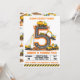 This cute construction truck 5th birthday invitation features bright yellow dump trucks, excavators, cranes, and cement mixers forming a bold road-style number five— perfect for a construction-themed boy birthday party.